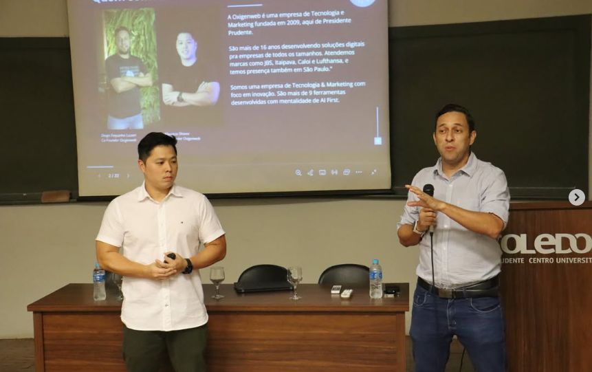 No dia 15 de abril, a Oxigenweb teve a honra de levar a sua visão de mercado para os alunos e profissionais na Universidade Toledo. Representada pelos nossos fundadores, Mauricio Shinmi e Diogo Faquinha , o tema da nossa palestra não poderia ser outro: A Mentalidade IA First.